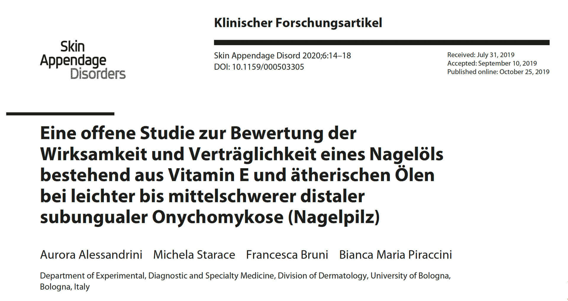 1. An Open Study to Evaluate Effectiveness and Tolerability of a Nail Oil Composed of Vitamin E and Essential Oils in Mild to Moderate Distal Subungual Onychomycosis