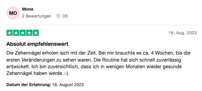 “Ich glaube meine Nägel sind noch nie so schnell gewachsen wie nach der Anwendung mit diesem Stift. Der Pilz ist fast weg, aber gleichzeitig sehen meine Nägel gesünder aus als je zuvor.”